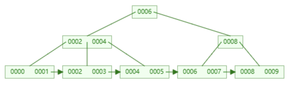 所以根节点一个键值两个孩子,两个非叶节点两个键值三个孩子,每个叶节点三个值,一共 \(2 \times 3 \times 3 = 18\) 个