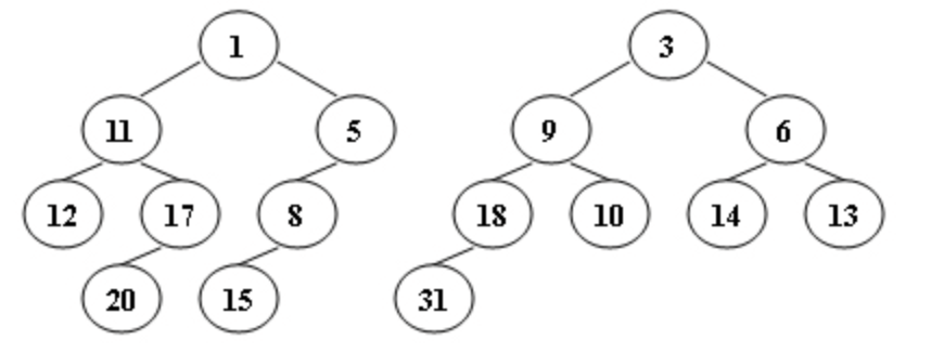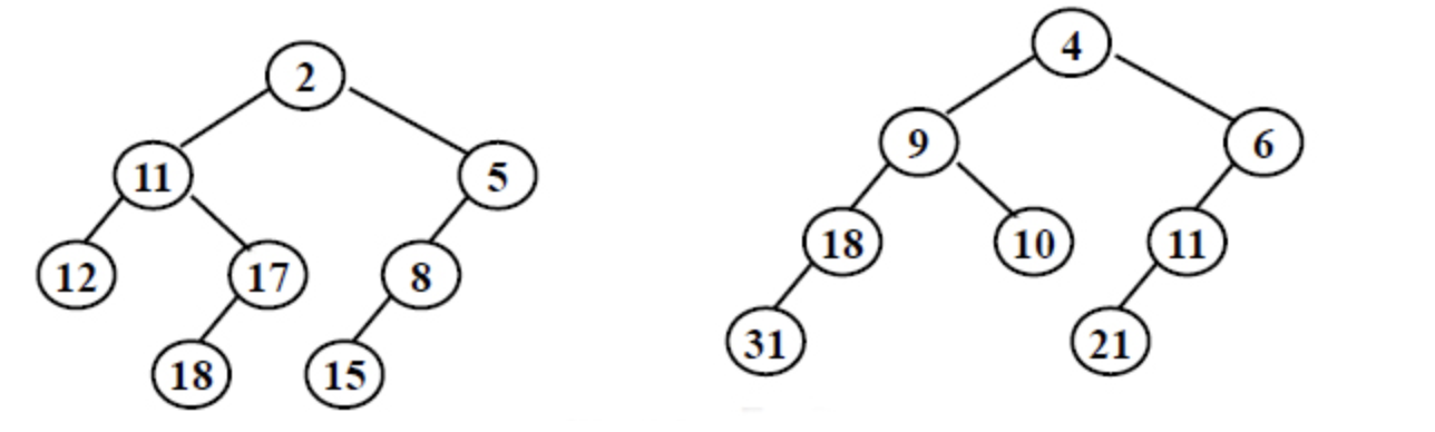 Merge the two leftist heaps in the following figure. Which one of the following statements is FALSE?