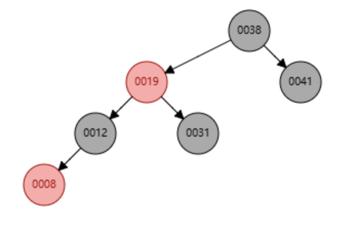 In the red-black tree that results after successively inserting the keys 41; 38; 31; 12; 19; 8 into an initially empty red-black tree, which one of the following statements is FALSE?