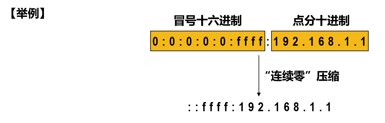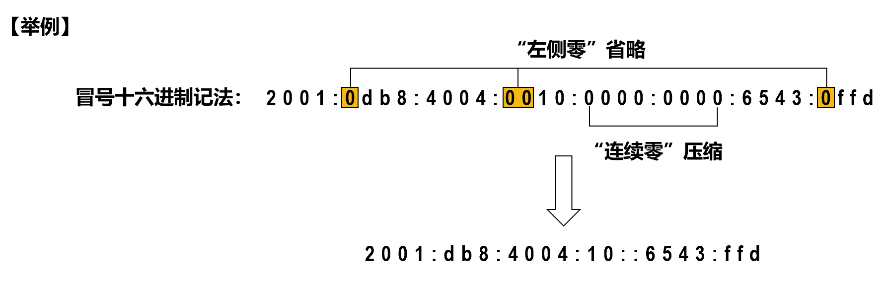 在IPv6地址的冒号十六进制记法的基础上,再使用左侧零省略和连续零压缩,可使IPv6地址的表示更加简洁。
