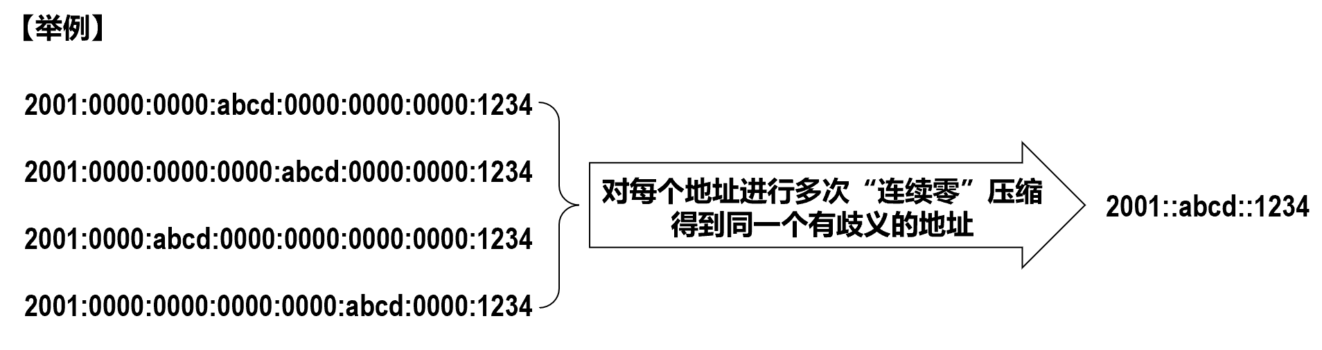 在一个IPv6地址中只能使用一次连续零压缩,否则会导致歧义。