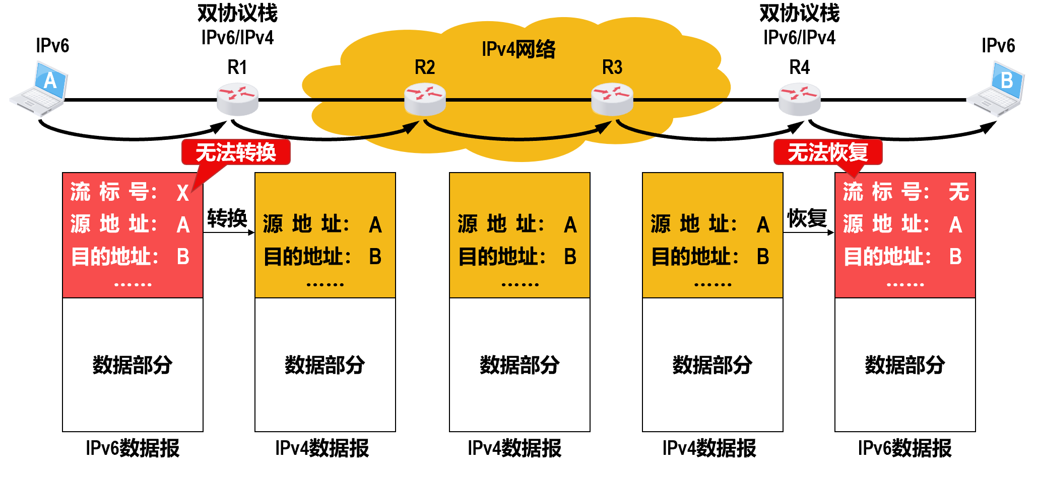 因特网上使用IPv4的路由器的数量太大,要让所有路由器都改用IPv6并不能一蹴而就。因此,从IPv4转变到IPv6只能采用逐步演进的办法。
