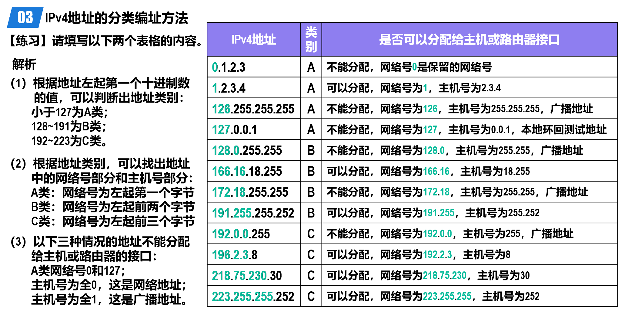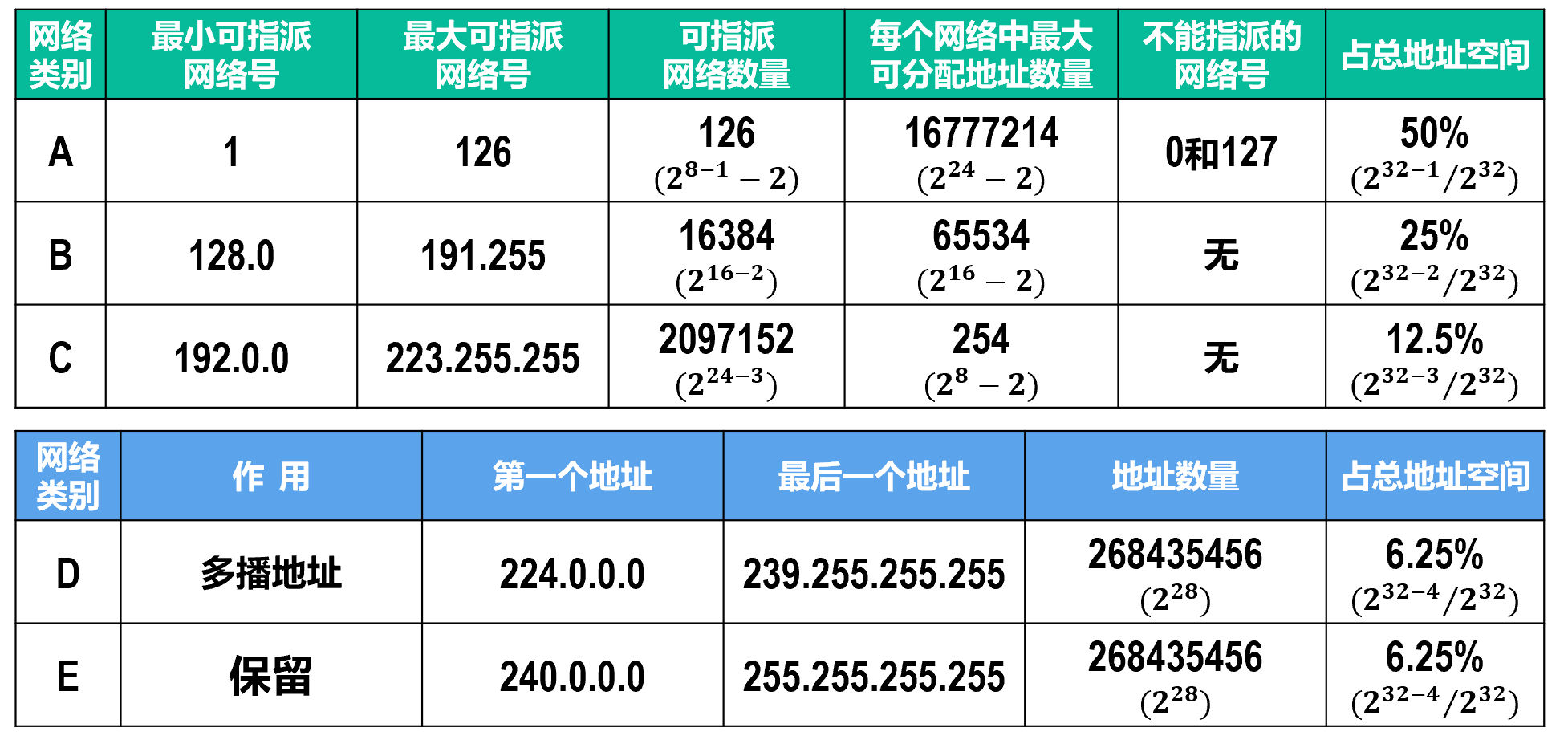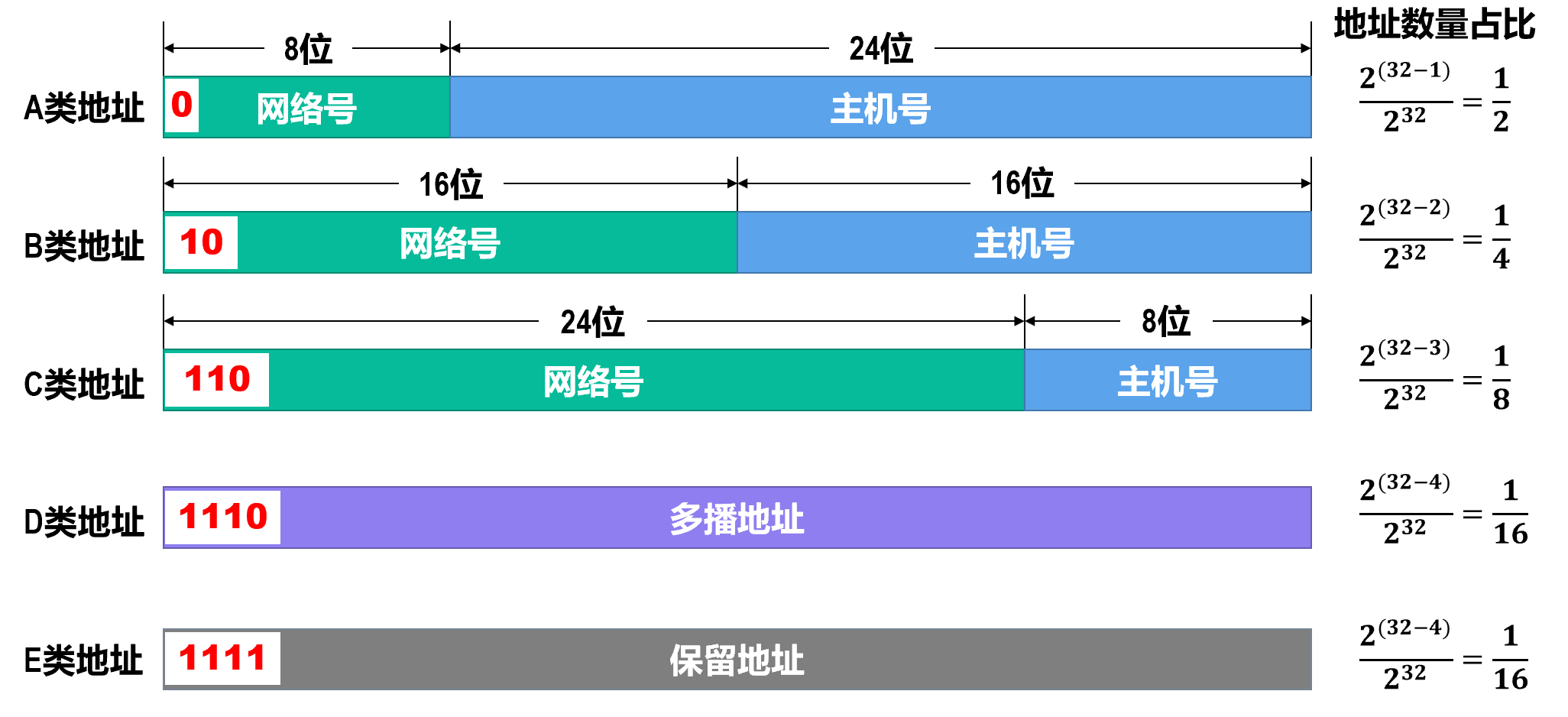 最早的IPv4地址分配方法,将IP地址分为A、B、C、D、E五类(主要用A/B/C)。