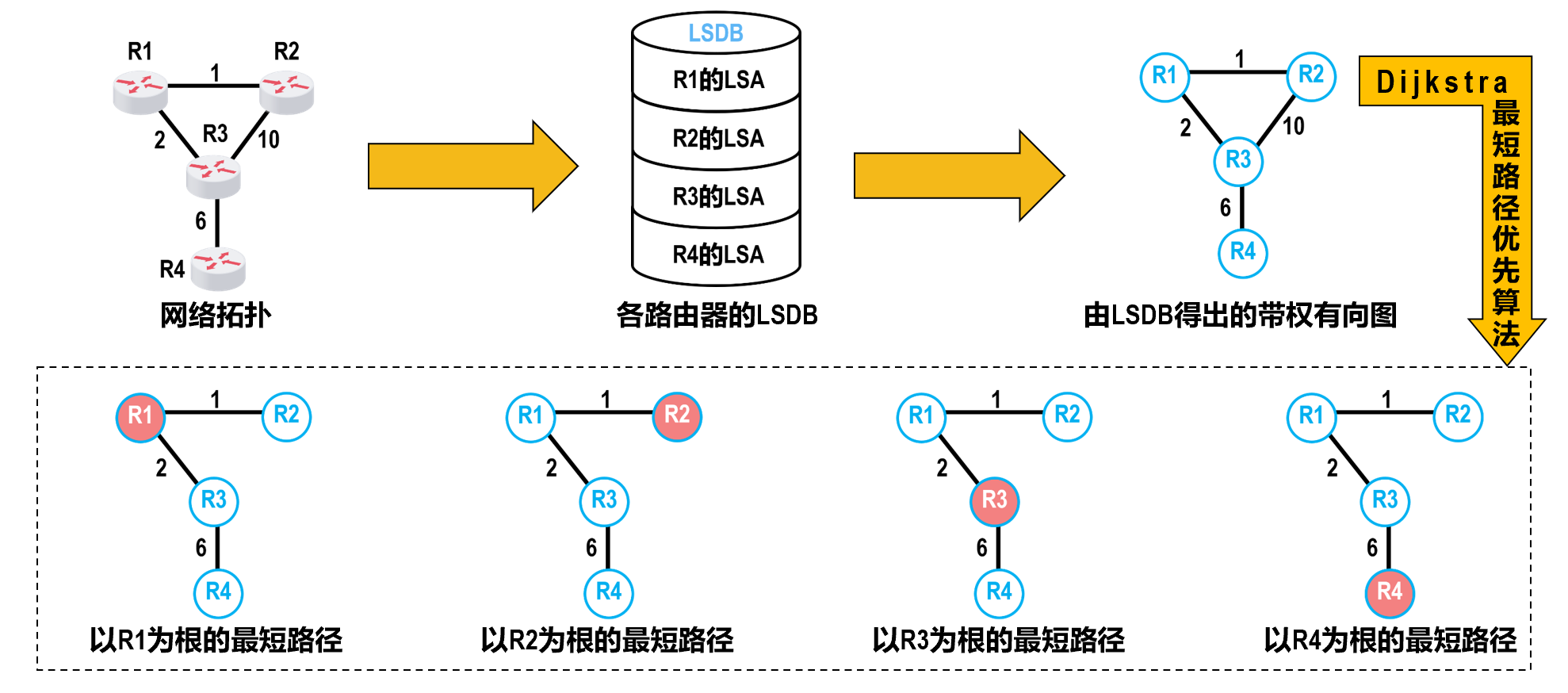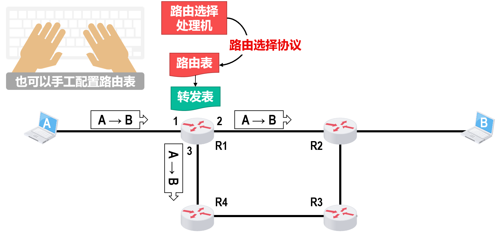 转发表是地图,路由选择算法是导航系统,路由表是导航系统中的路线数据库。