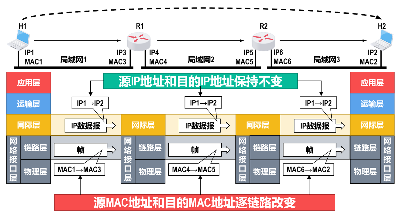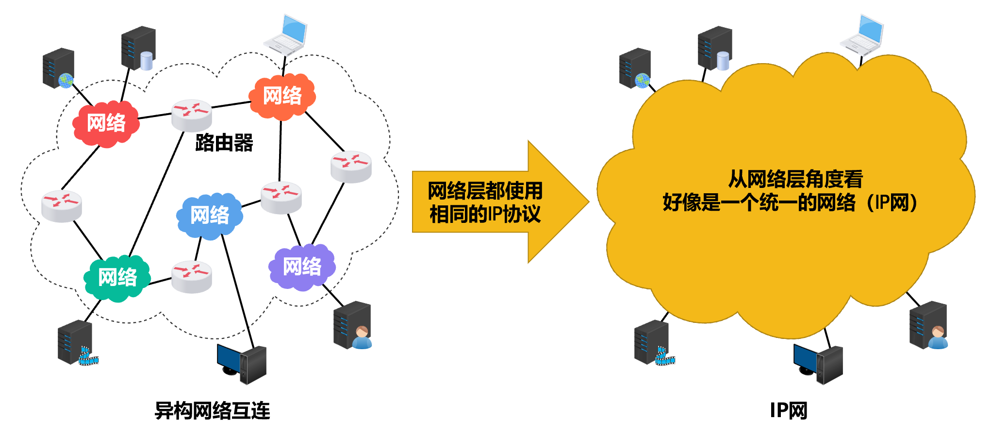 当IP网上的主机进行通信时,就好像在一个单个网络上通信一样,它们看不见互连的各网络的具体异构细节。