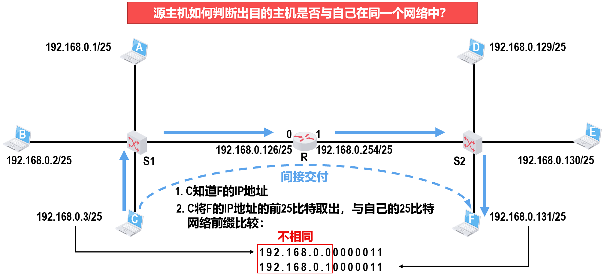 每个分组可走不同的路径。因此,每个分组的首部都必须携带目的主机的完整地址。