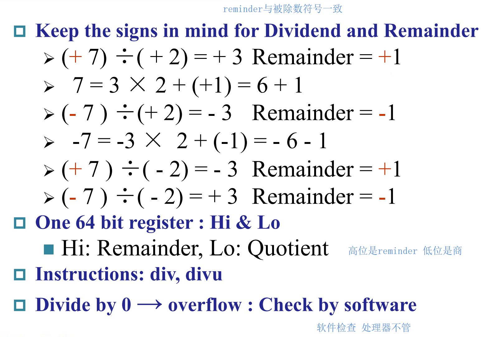 - 如果小于 0 那么将 Divisor 寄存器中的数再加到 Remainder 寄存器的左边,再将 Remainder 寄存器左移一位,进入第6步;