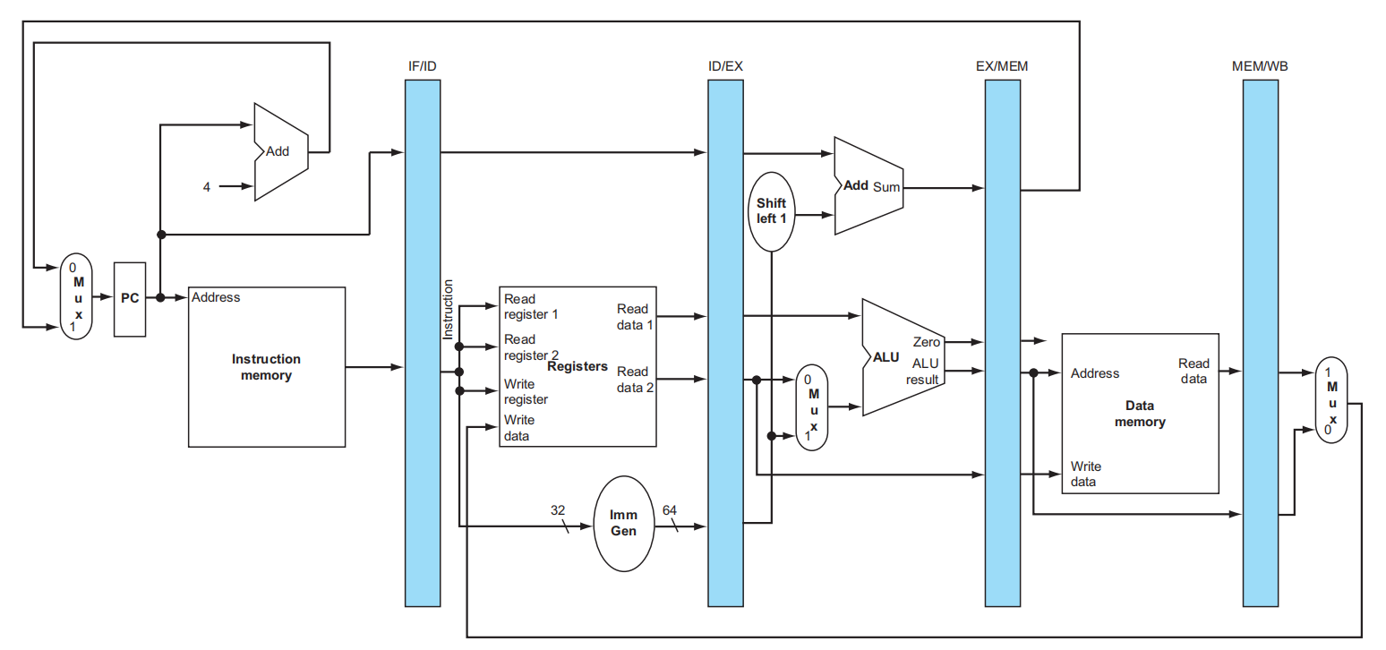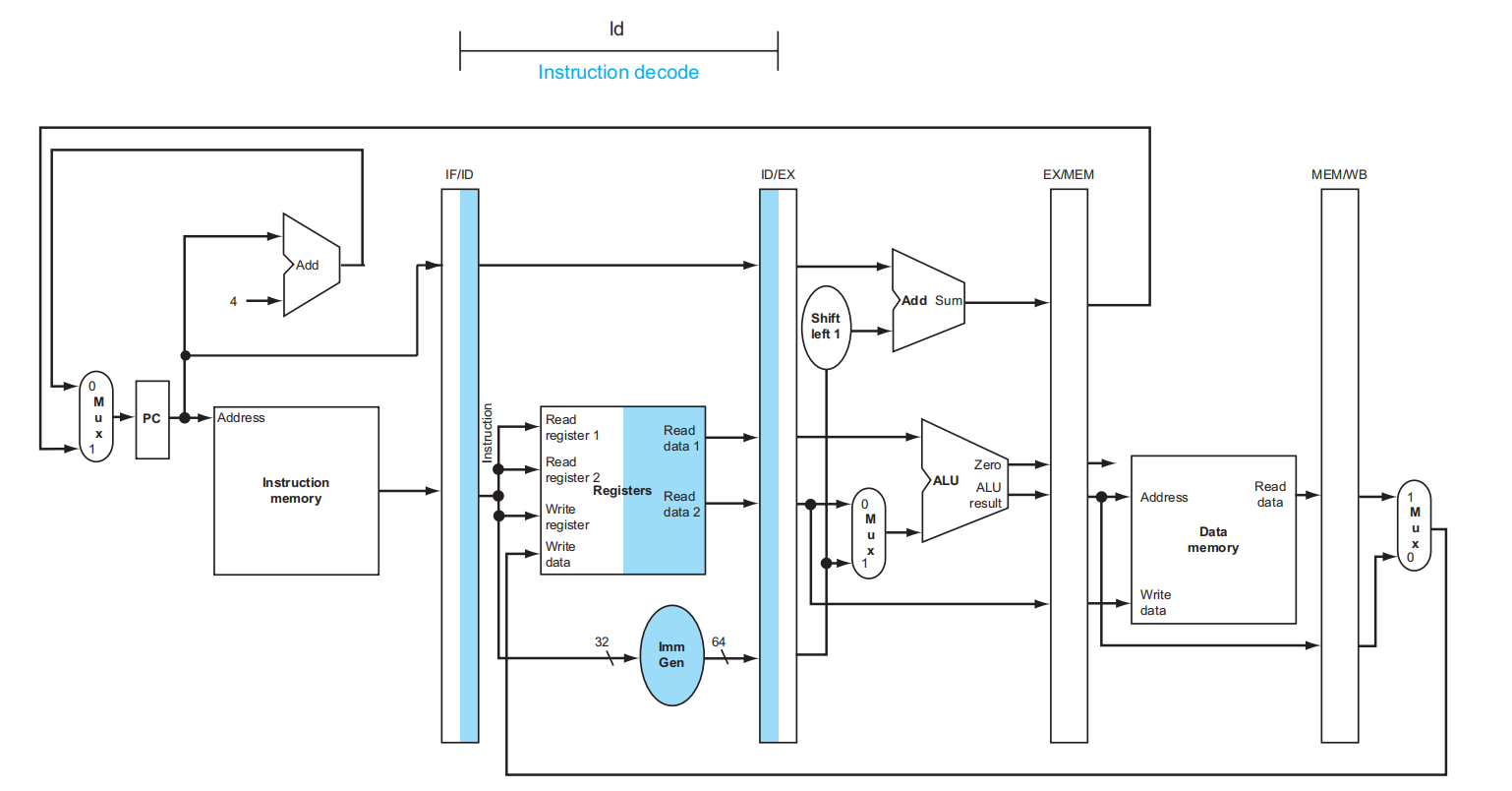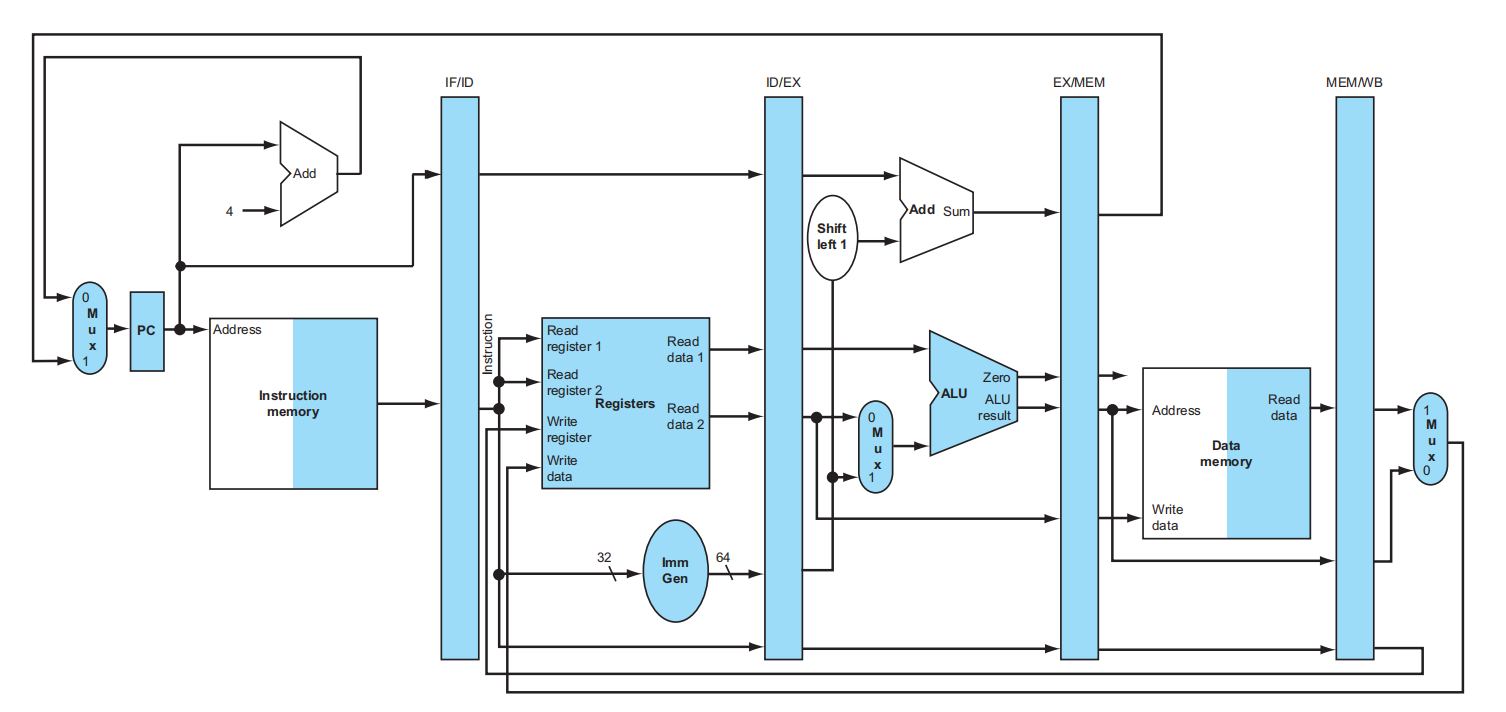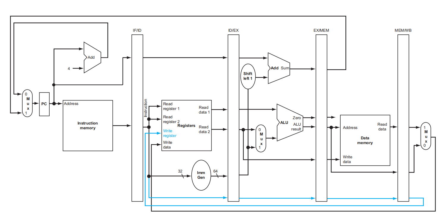 - Reg files 的写入均发生在上半周期,也就是上升沿;而 Pipeline registers 和