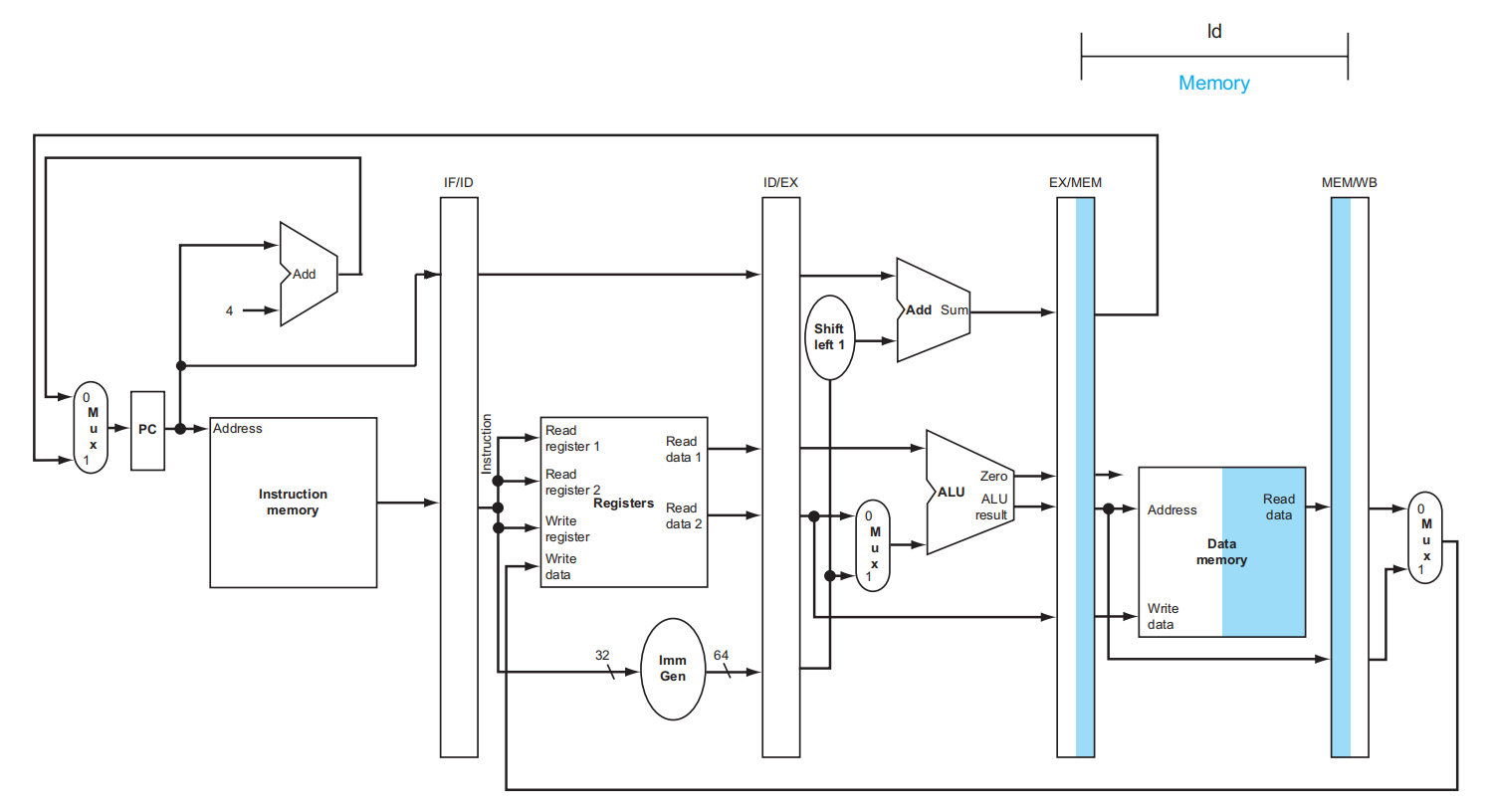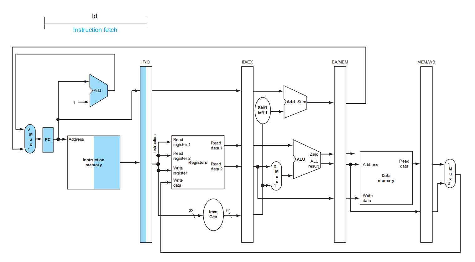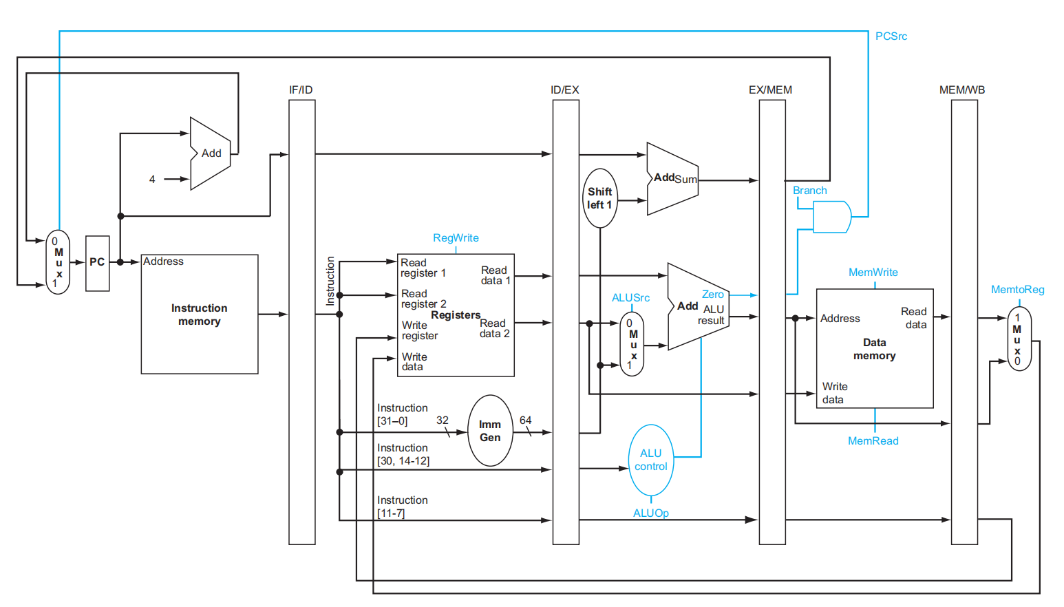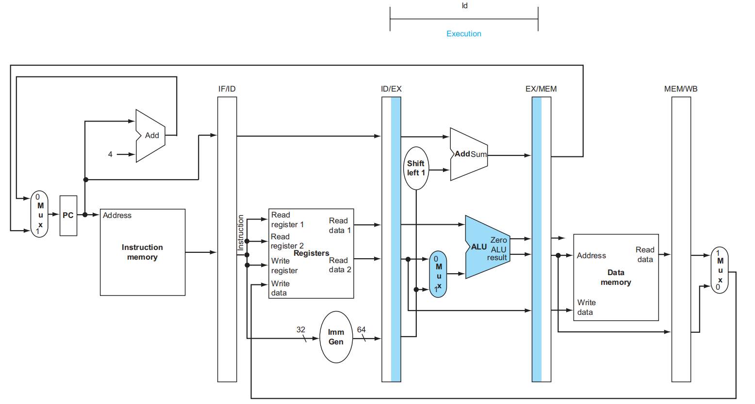 - Reg files 的写入均发生在上半周期,也就是上升沿;而 Pipeline registers 和