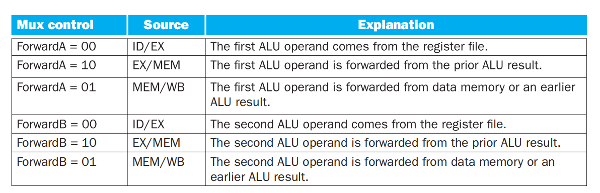 and (EX/MEM.RegisterRd = ID/EX.RegisterRs1)) ForwardA = 10