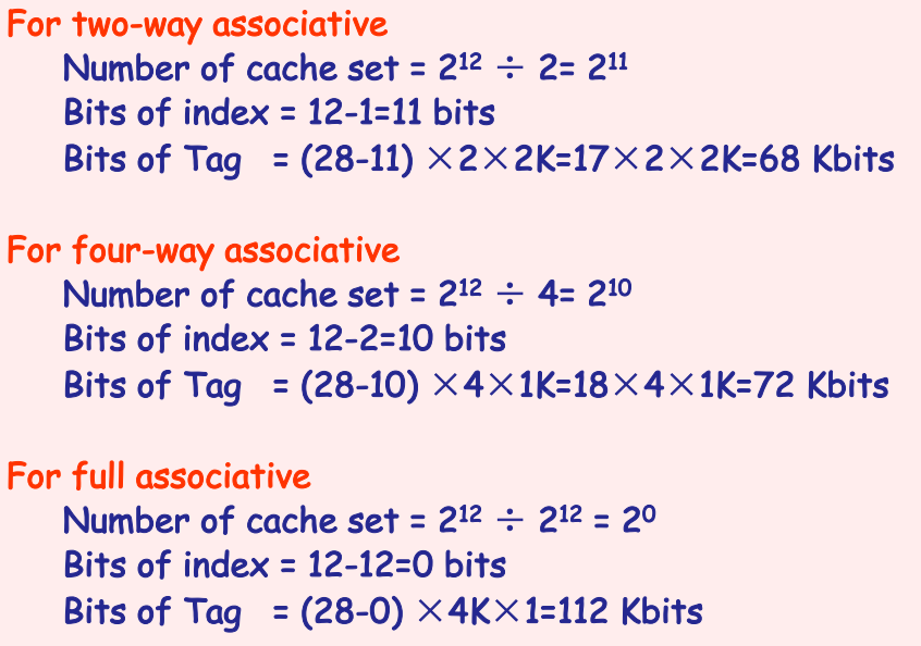 由于数据块可以放置在该组内的任意位置,组内所有元素的所有标签都必须被检查。提高相联度的好处是通常可以降低失效率,主要的问题在于可能会增加命中时间。