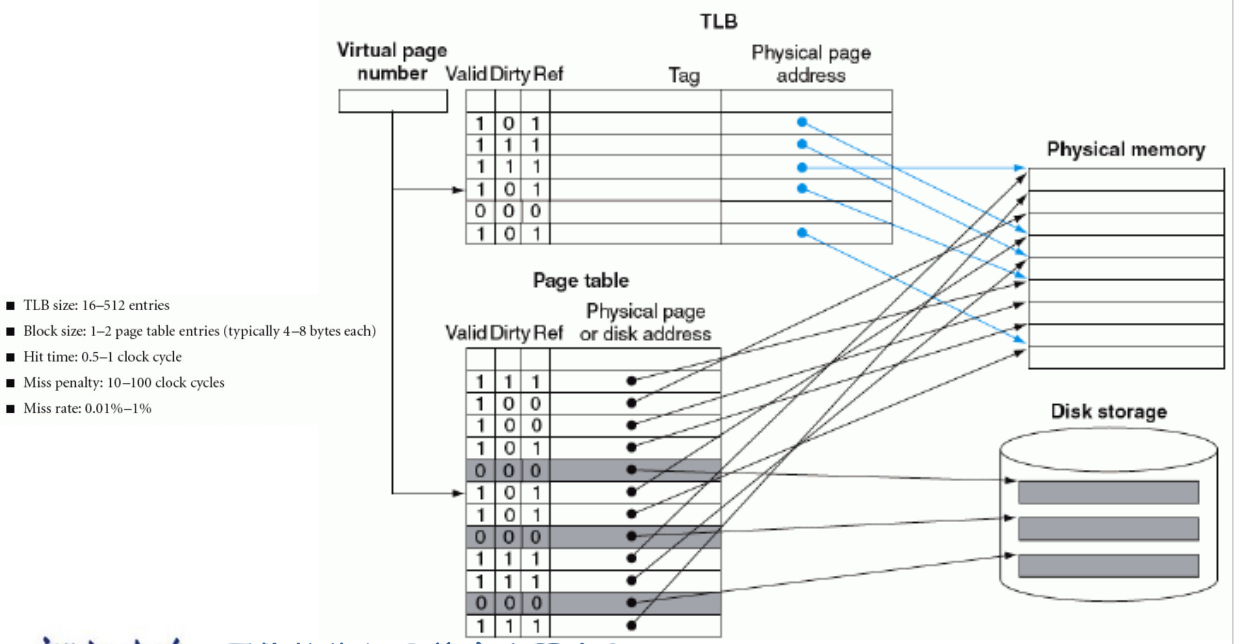而不是使用硬件加速。 - 缺页失效可以由软件处理,因为与磁盘访问时间相比,这样的开销将很小。此外,软件可以用巧妙的算法来选择如何放置页面,只要失效率减少很小一部分就足以弥补算法的开销。