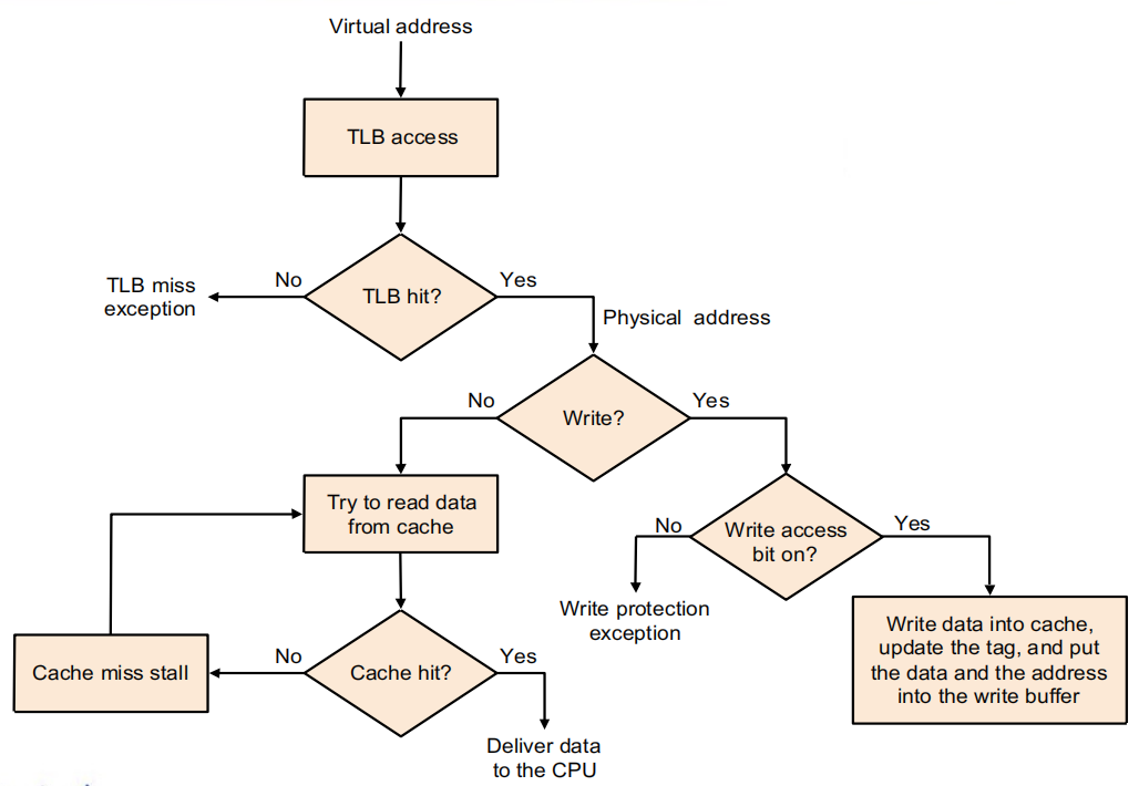 此外,TLB失效或缺页失效例外必须在访存发生的同一个时钟周期的末尾被判定,这样下一个时钟周期将开始进行例外处理而不是继续正常的指令执行。如果在此时钟周期内未识别出缺页失效,一条 load