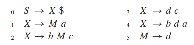 \(X \rightarrow \cdot b d a \quad [\$]\)