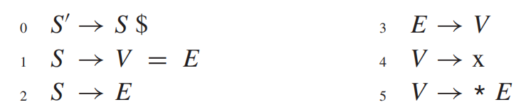 但同时,项目 \(S \rightarrow V \cdot = E\) 指示遇到 = 时应当移进 (s7)。由于在一个单元格 Action[2, =] 中同时出现了 s7 和 r3,SLR 分析表无法做出唯一决定。