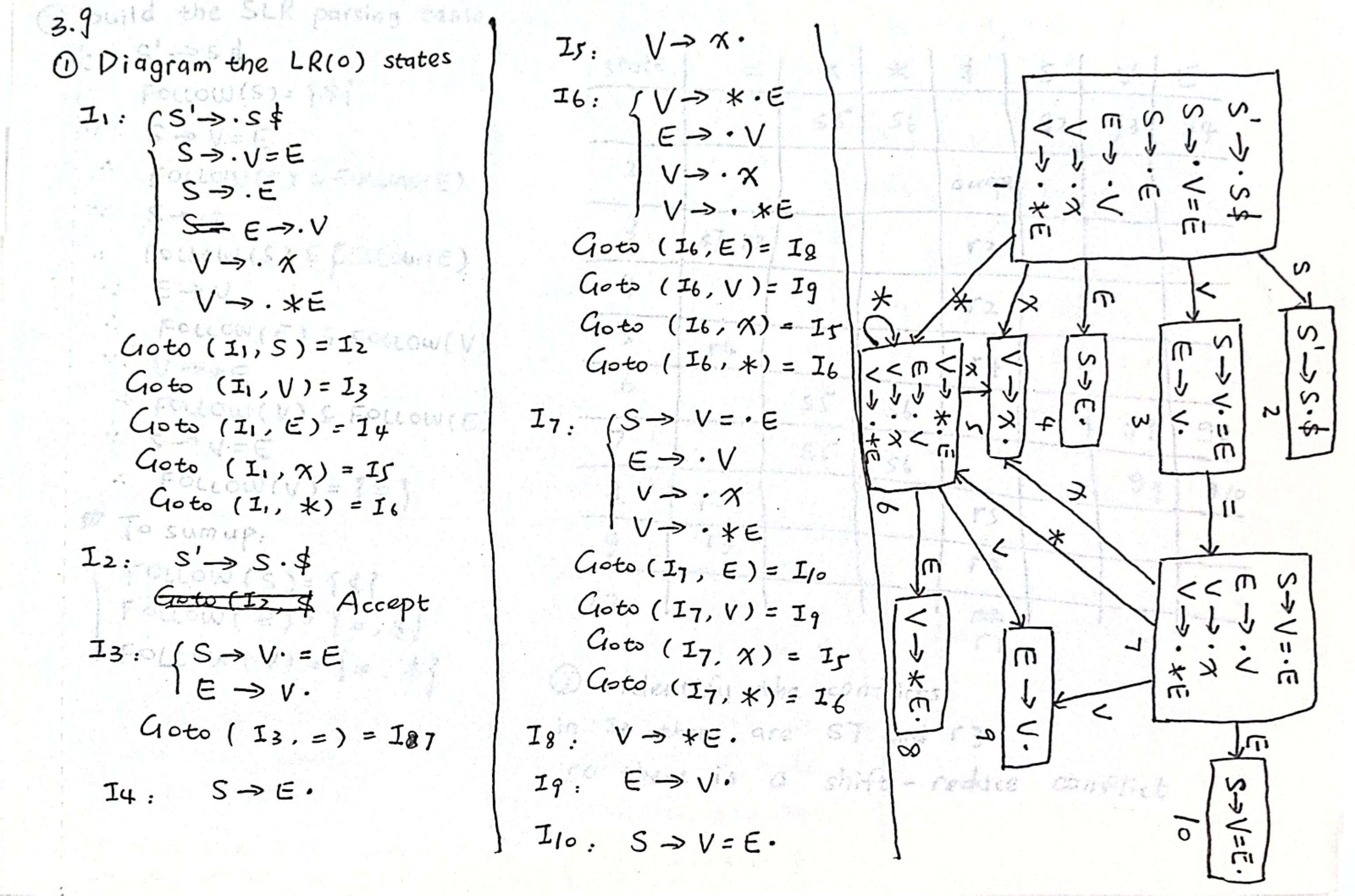 \(Goto(I_5, V) \Rightarrow \mathbf{I_9}\)