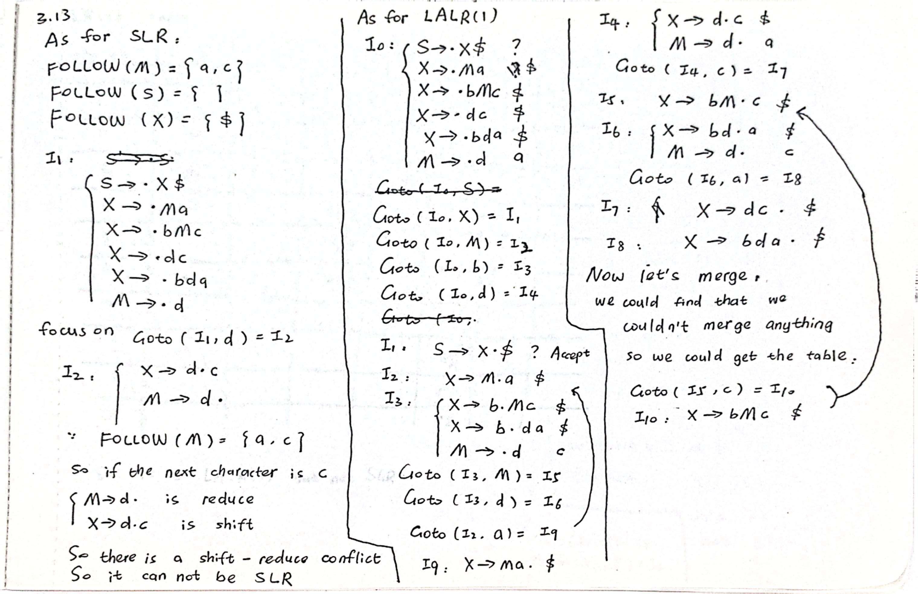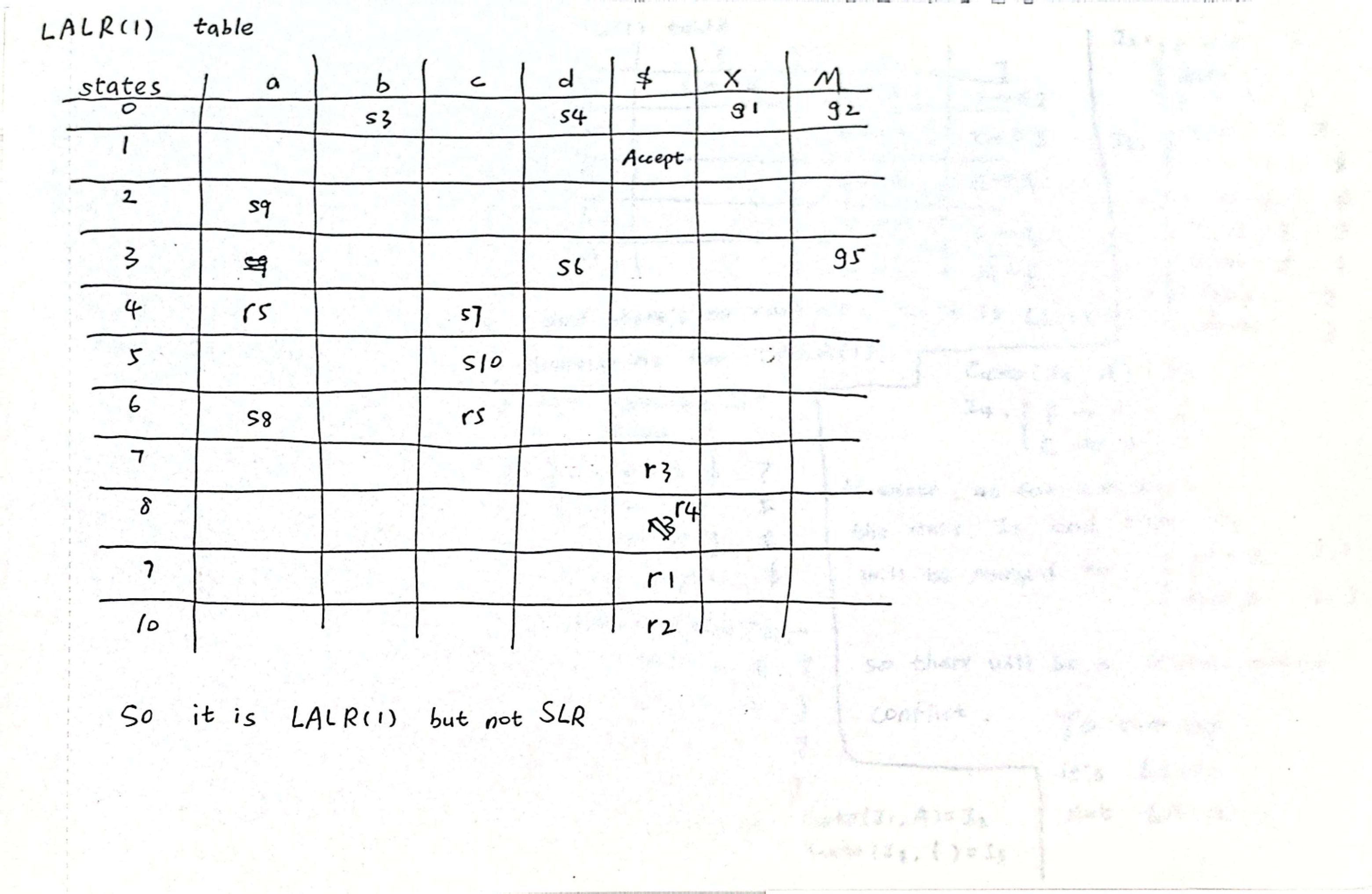 在这个状态中:遇到 \(a\) 执行移进;遇到 \(c\) 执行规约。二者完美错开,同样没有冲突。