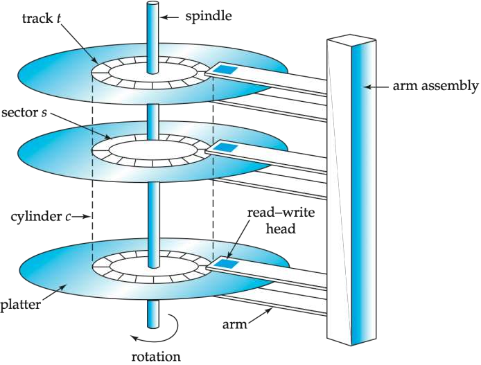 - Data-transfer rate(数据传输率) – the rate at which data can be retrieved from or stored to the disk.