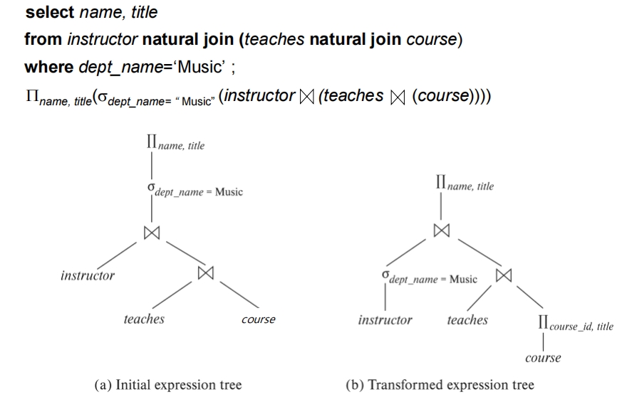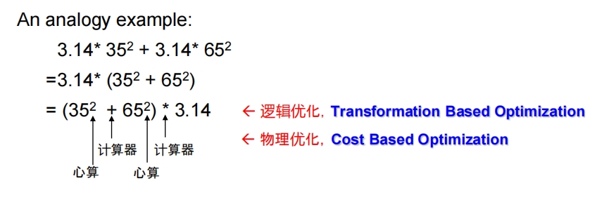 - Statistics estimation for intermediate results 中间结果的规模估计 (Cardinality Estimation 基数估计) e.g. to compute cost of complex expressions