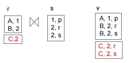 Similarly for deletes \(V^{new} = V^{old} - (d_r \bowtie S)\)