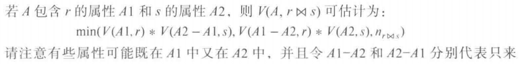 \(V(A, r)\) number of distinct values that appear in r for attribute A; same as the size of \(\Pi_{A}(r)\) 关系 r 中出现的对于属性 A 的非重复值的数量。该值与 \(\Pi_{A}(r)\) 的规模相同。