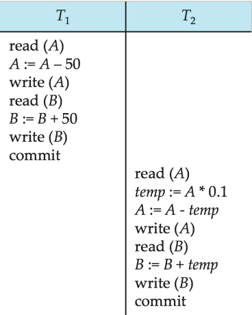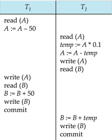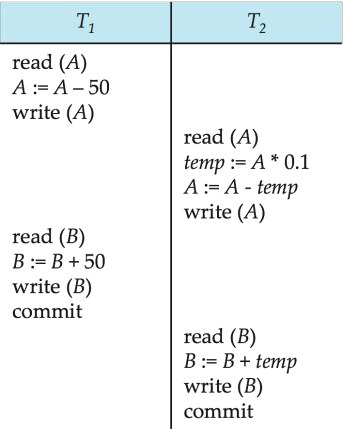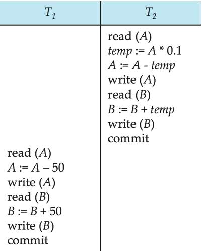 Consistency requirement in above example: the sum of A and B is unchanged by the execution of the transaction