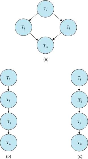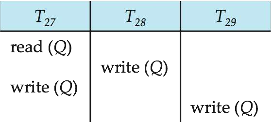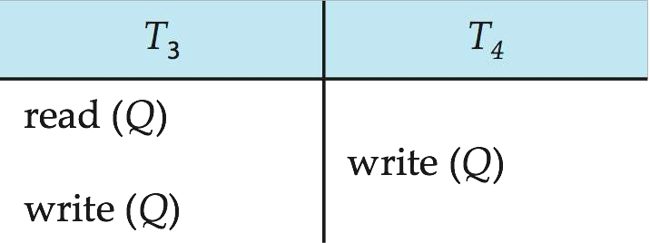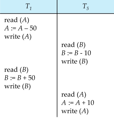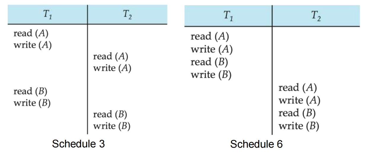 That is, for every pair of transactions \(T_i\) and \(T_j\) , it appears to \(T_i\) that either \(T_j\) finished execution before \(T_i\) started, or \(T_j\) started execution after \(T_i\) finished.