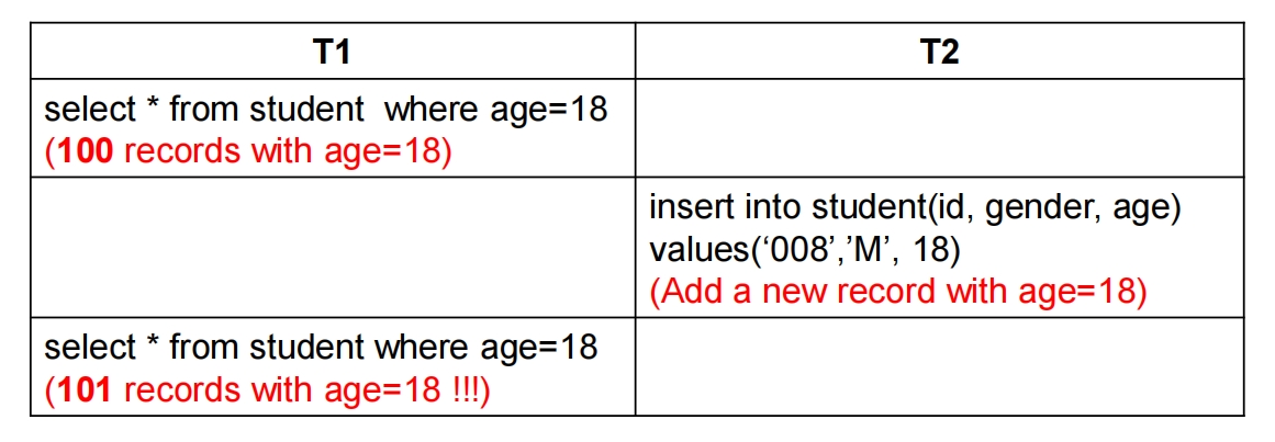 Repeatable Read : 保证同一事务内多次读取相同记录结果一致,但可能看到其他事务新增的记录