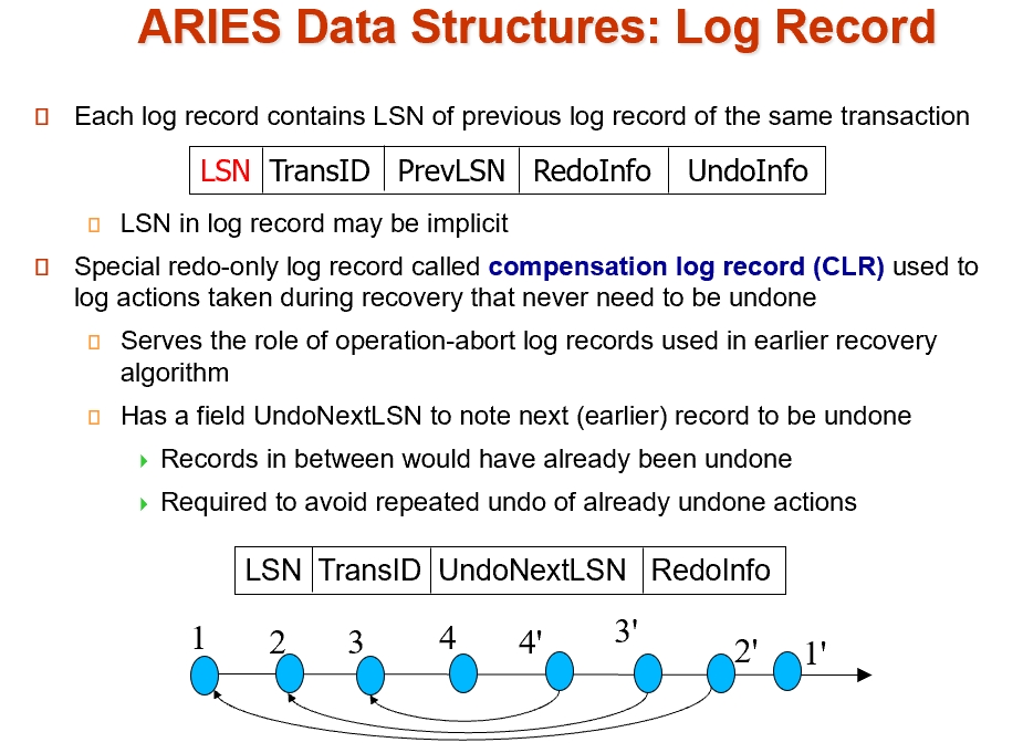 - UndoNextLSN: CLR中的一个字段,指向该事务下一个需要被撤销的日志记录的LSN,确保了即使在回滚过程中发生崩溃,也能正确地继续回滚,避免重复撤销。