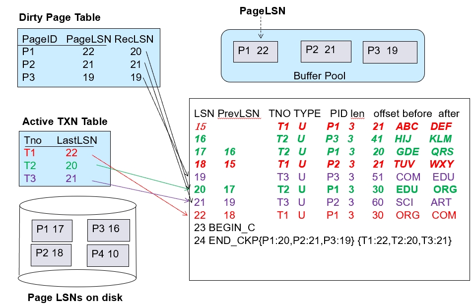 - Otherwise fetch the page from disk. If the PageLSN of the page fetched from disk is less than the LSN of the log record, redo the log record