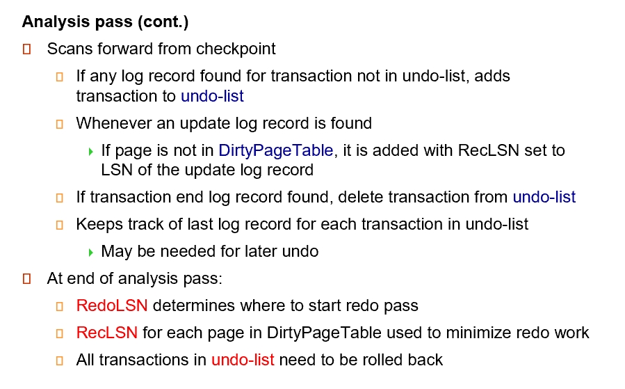 指针链向后扫描日志。 - 目的:撤销所有未提交事务(即
