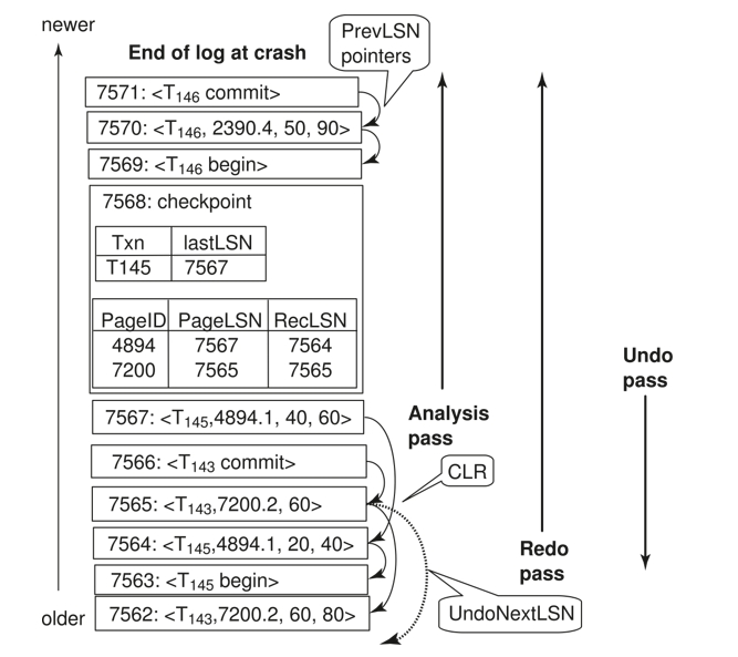- PrevLSN pointers: 清晰地展示了每个事务的日志记录是如何链接起来的,方便在撤销阶段反向追踪。