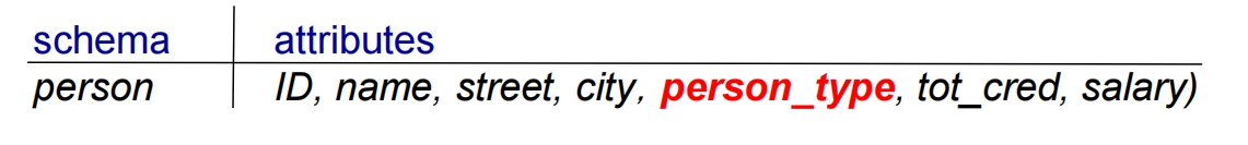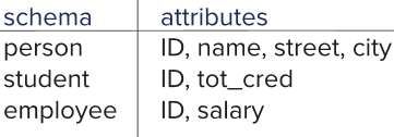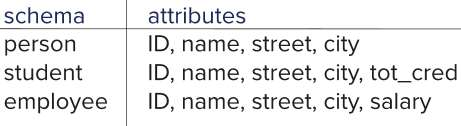 Drawback: name, street and city may be stored redundantly for people who are both students and employees