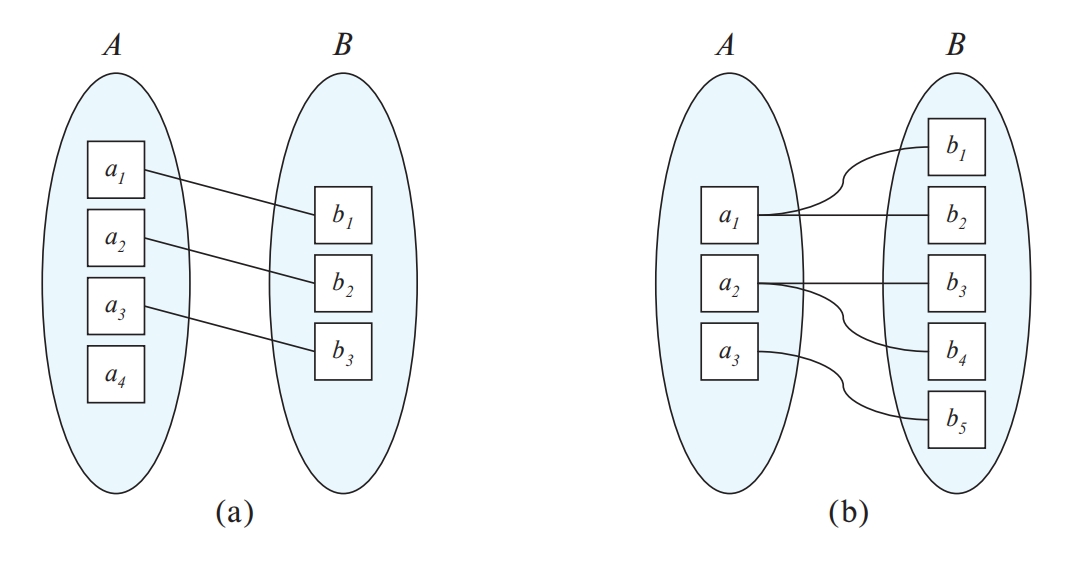 对于实体集 A 和 B 之间的二元联系集 R 来说,映射基数必然是以下情况之一: