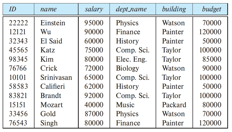 所有这些元组的预算数额统一这一点是重要的,否则我们的数据库将会不一致。在使用 instructor