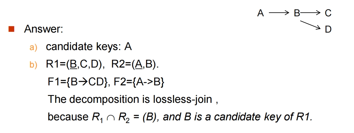 In other words, if \(R_1 \cap R_2\) forms a superkey for either \(R_1\) or \(R_2\), the decomposition of R is a lossless decomposition.