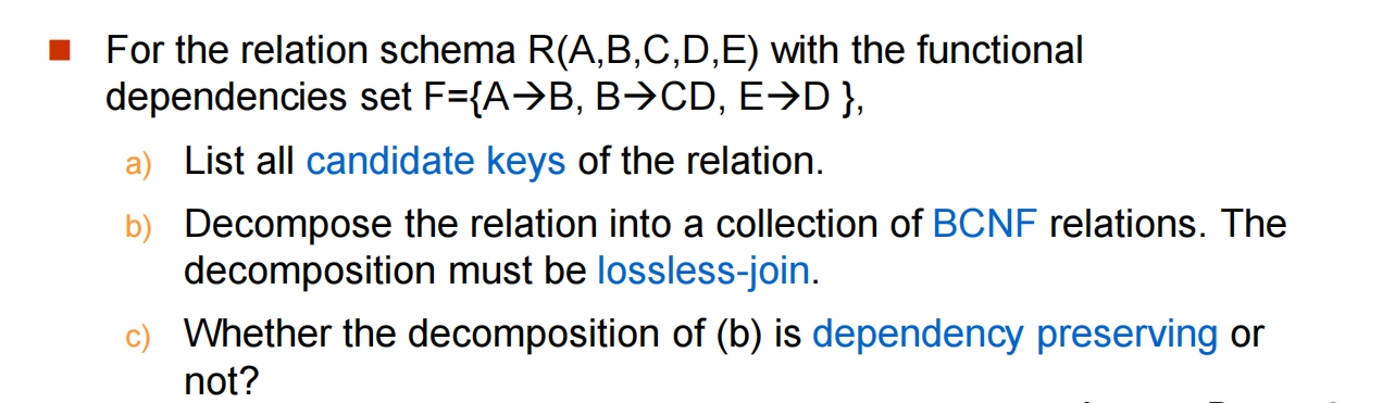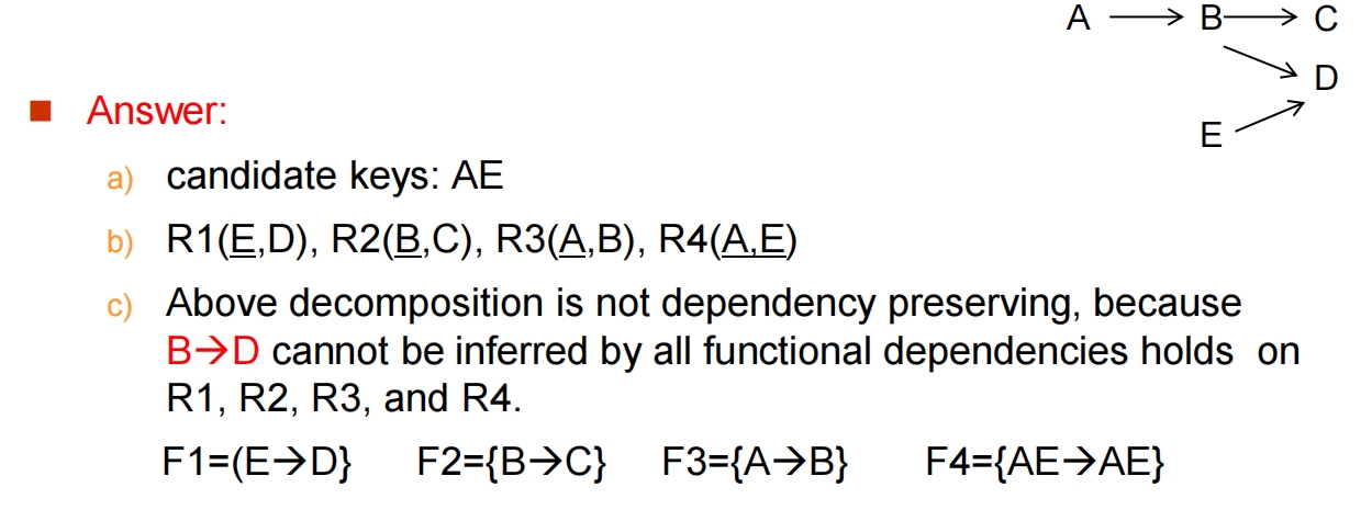 - To test if \(\alpha\) is a superkey, we compute \(\alpha^+\) and check if \(\alpha^+\) contains all attributes in R.