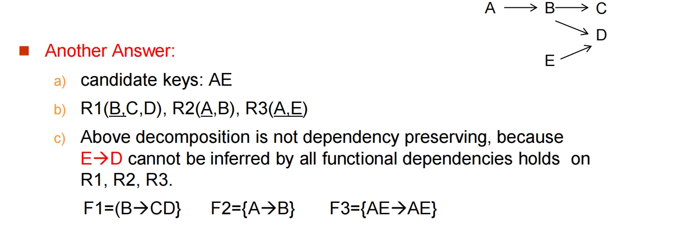 - However, in a real (imperfect) design, there can be functional dependencies from non-key attributes of an entity to other attributes of the entity