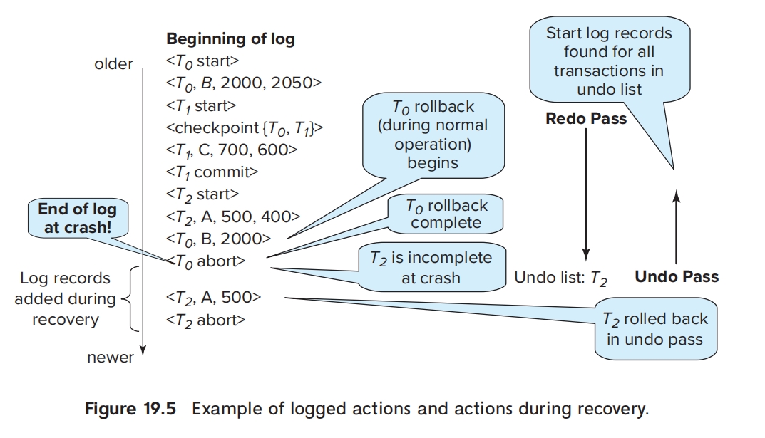 Consider the log in Figure 19.5. Suppose there is a crash just before the log record <T0 abort>