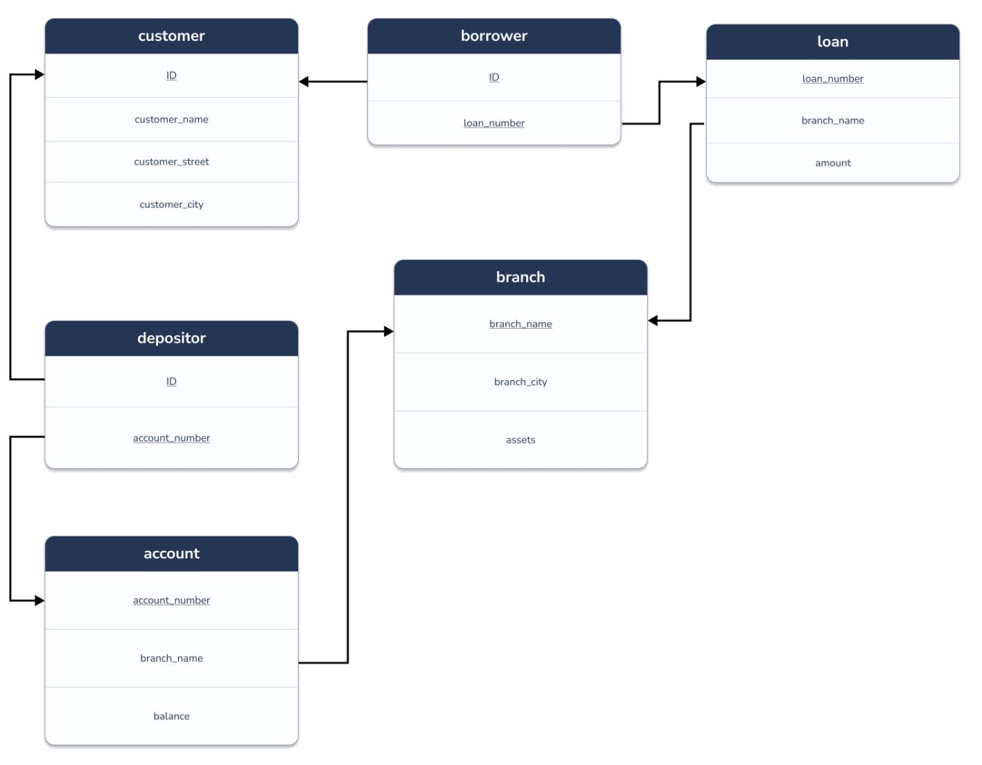 Consider the bank database of Figure 2.18. Assume that branch names and customer names uniquely identify branches and customers, but loans and accounts can be associated with more than one customer.