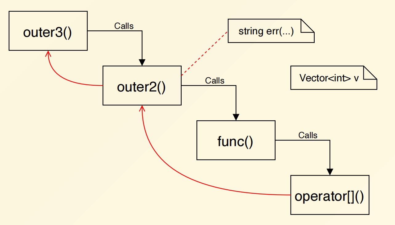 - Throwing/catching by pointer introduces coupling between regular code and handler code: