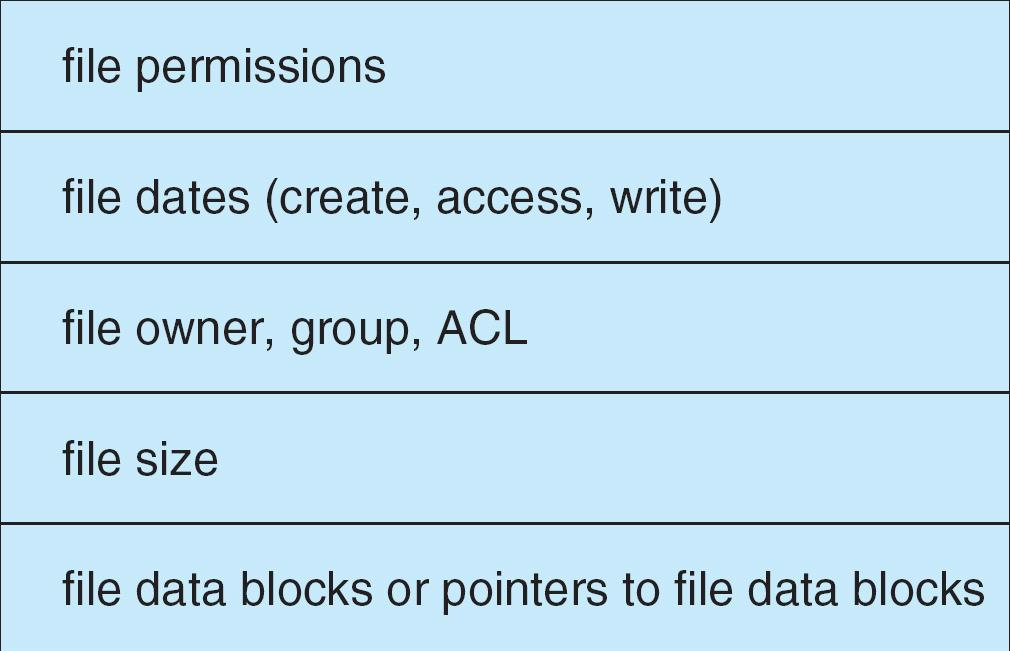 - types of data kept in file’s directory entry (for example “last write date” is recorded in directory) 目录项中保存的数据类型(如“最后写入日期”)