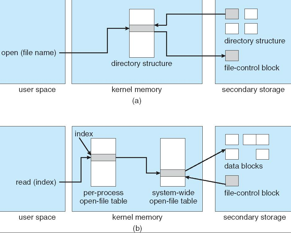 - 每个进程有自己的打开文件表,记录该进程打开的文件及其状态(如读写指针、访问模式等)。