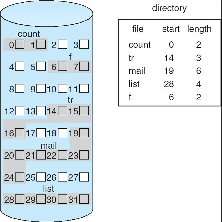 例子:决定文件内容分布在哪些磁盘块上,如何查找和分配空闲块。