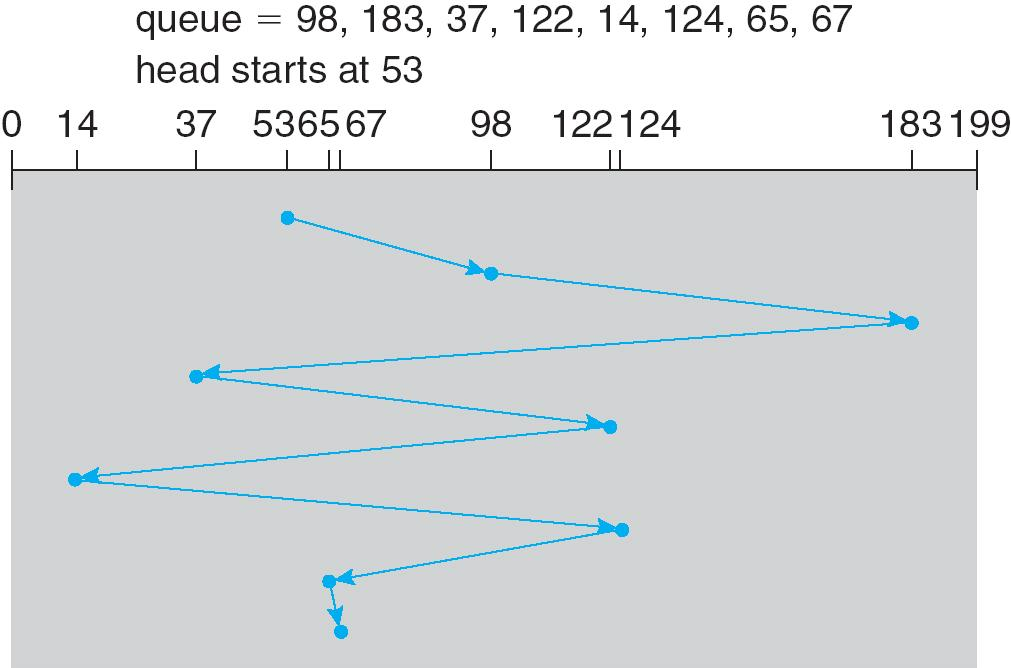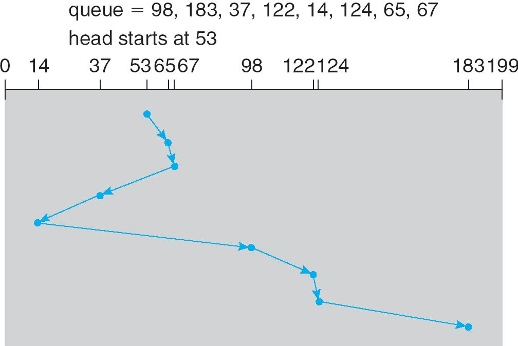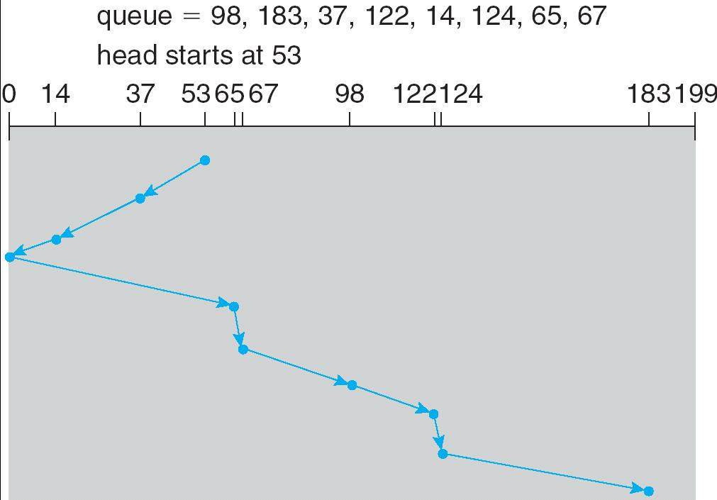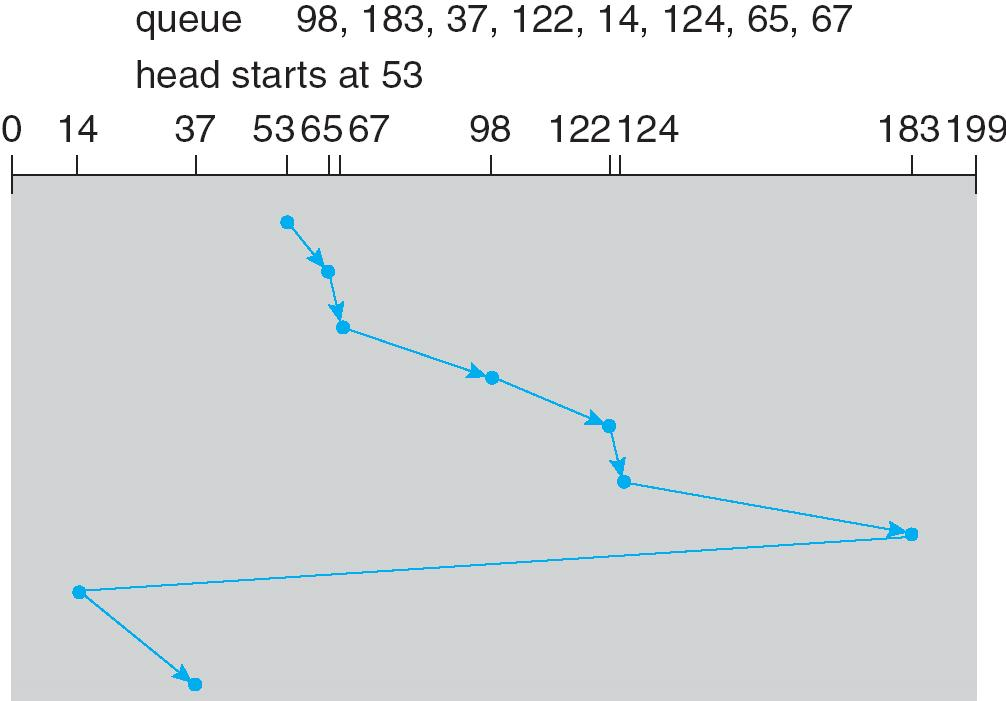 SSTF 很常用,直观,适合一般负载的系统。它每次选择距离当前磁头最近的请求,平均寻道距离较短。