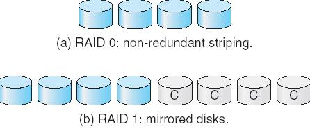 Disk striping (条带化) uses a group of disks as one storage unit.