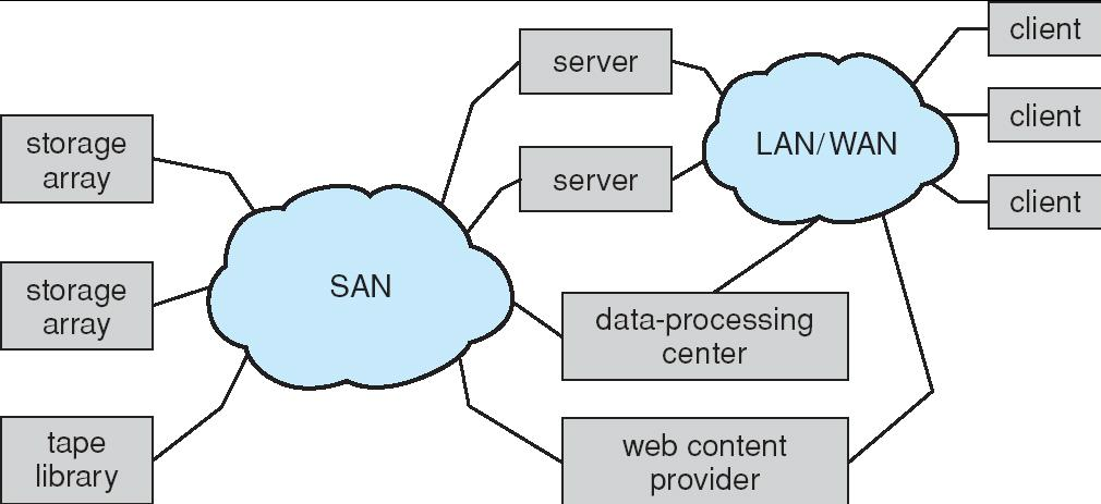 - Can be switched fabric with 24-bit address space – the basis of storage area networks (SANs) in which many hosts attach to many storage units