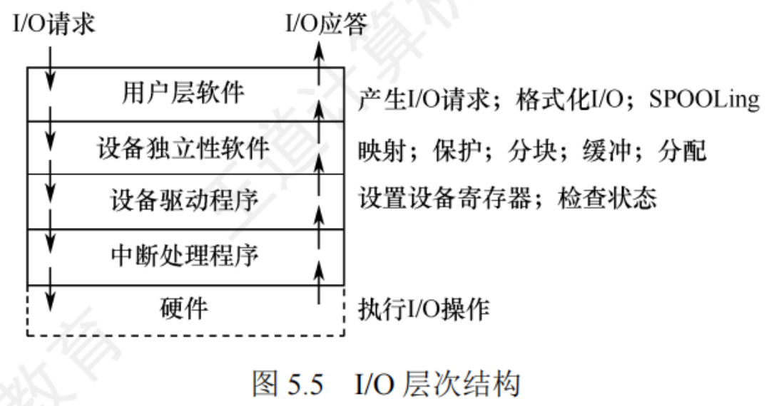 设备驱动处理I/O请求,向设备控制器发出具体命令,并配置控制器在I/O完成前阻塞。