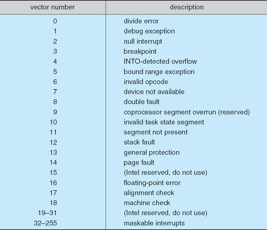 - Some nonmaskable 有些中断不可屏蔽