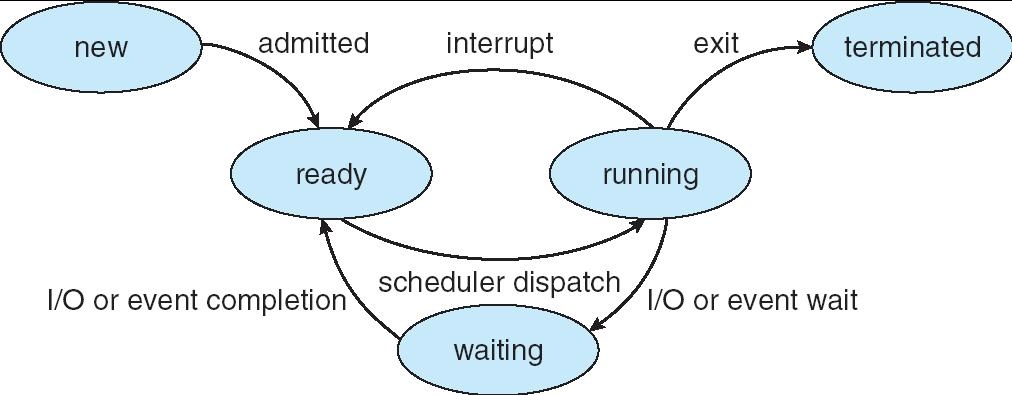- waiting → ready:等待的事件完成,进程重新进入就绪队列(I/O or event completion)。